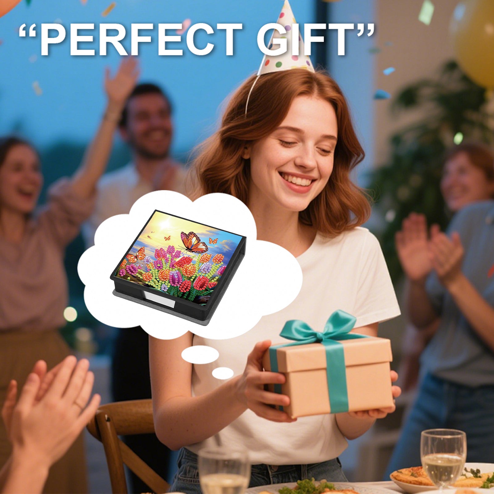 Tulips PU DIY 5D Diamond Painting Note Box w/160 Sheets for Office Home School