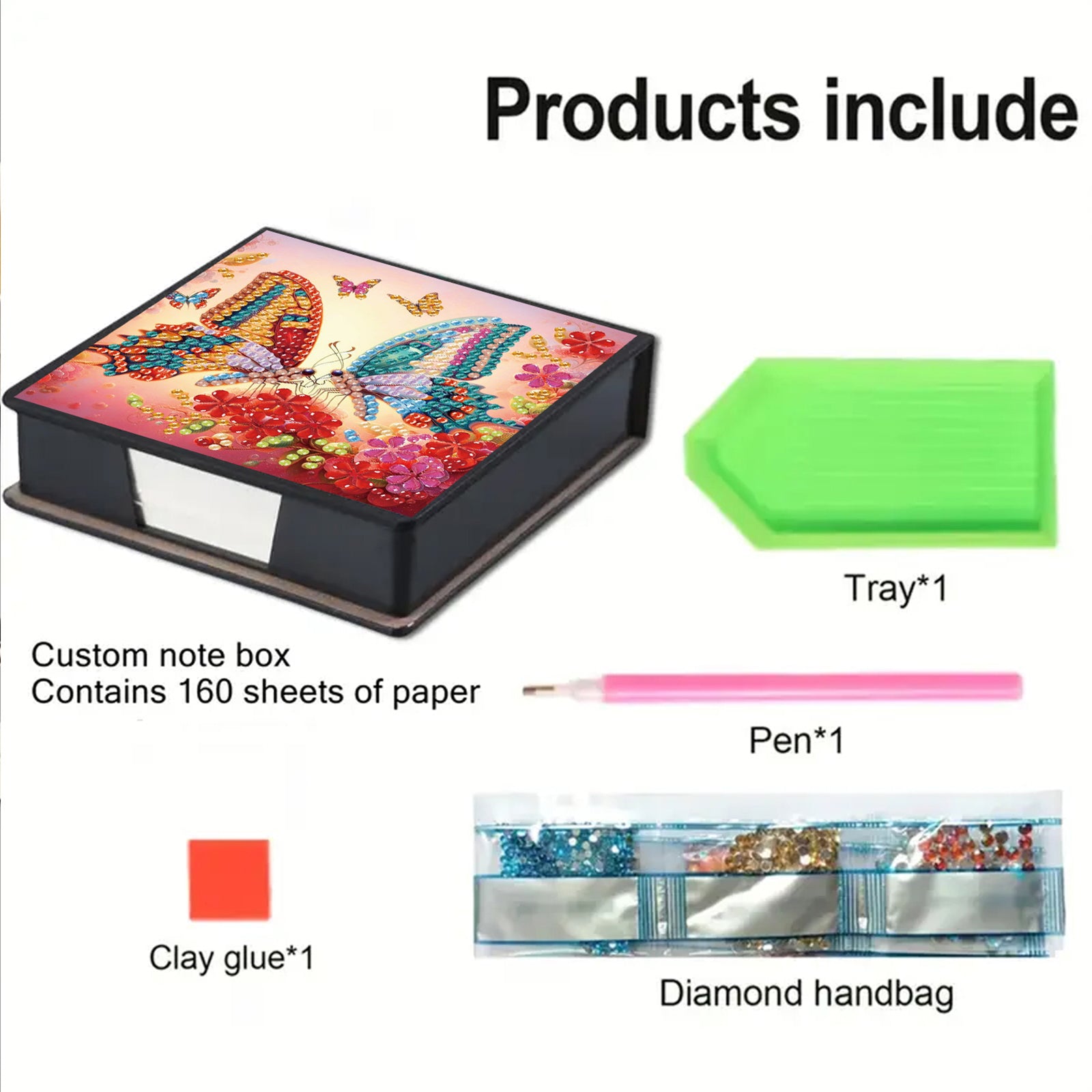 Two Butterflies PU DIY 5D Diamond Painting Note Box w/160 Sheets for Office Home
