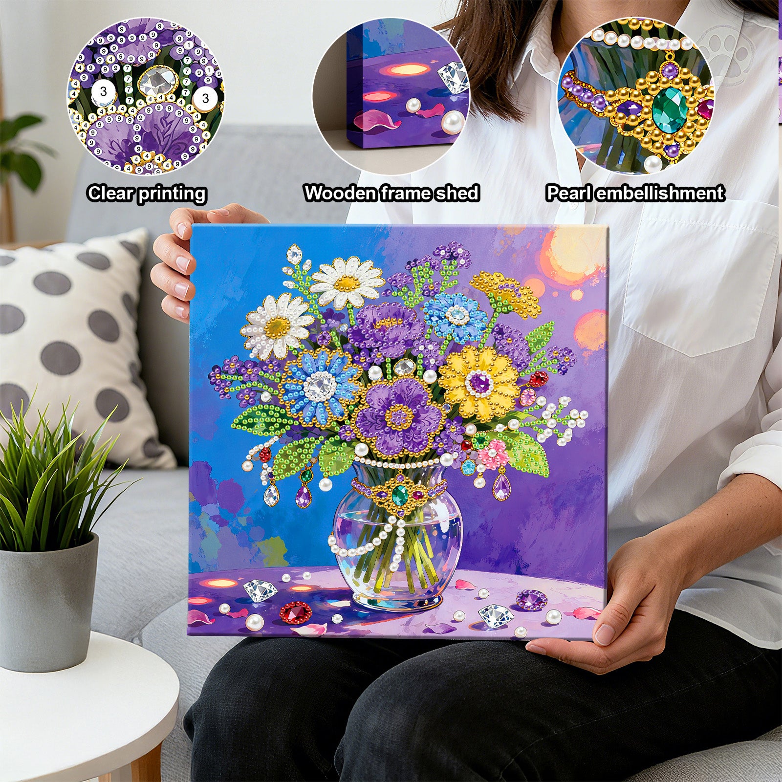Vase - DIY Pearl Gem Art Diamond Painting Kits With Framefor Home Decor -25x25cm