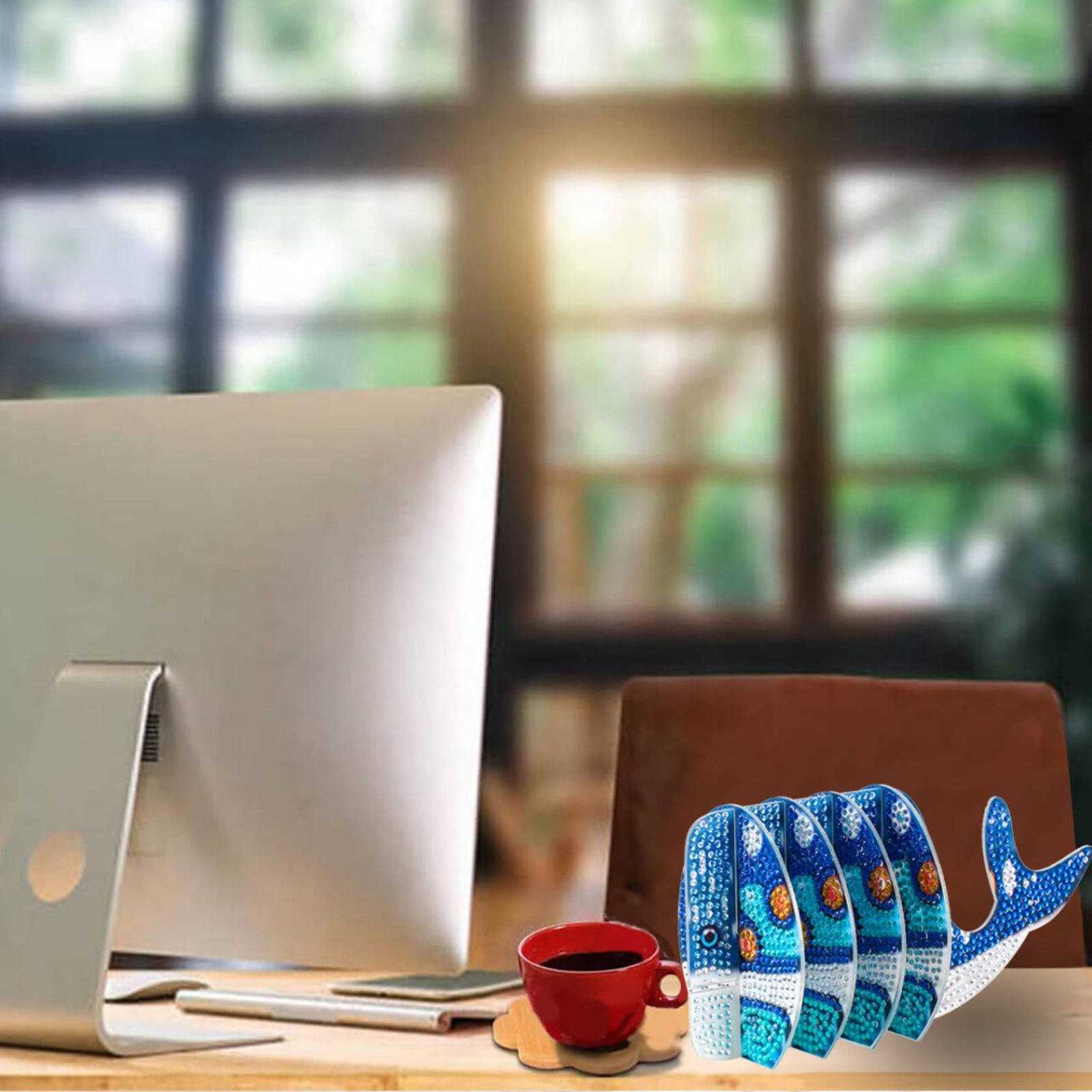 Whale 5D DIY Animal Pattern Diamond Painting Coasters Kits with Holder for Home