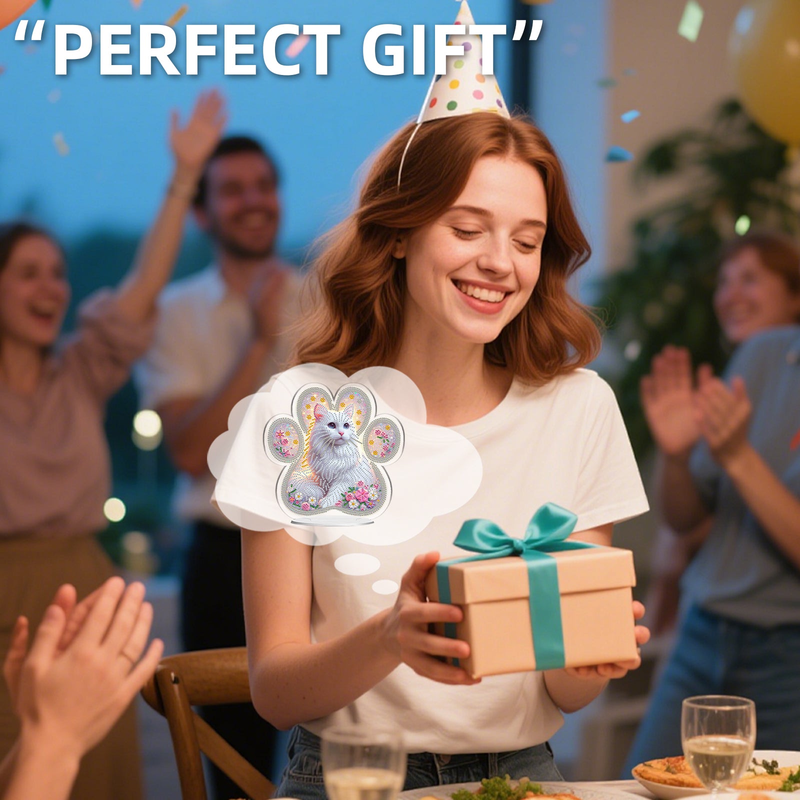 White Cat DIY 2D Flat Acrylic Desktop Special Shaped Diamond Art Kit 24*22cm