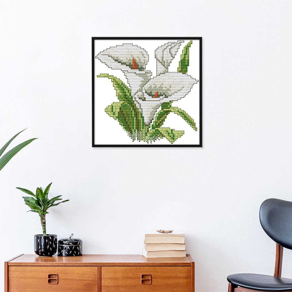 White Flower - 14CT Stamped Cross Stitch 17*17CM