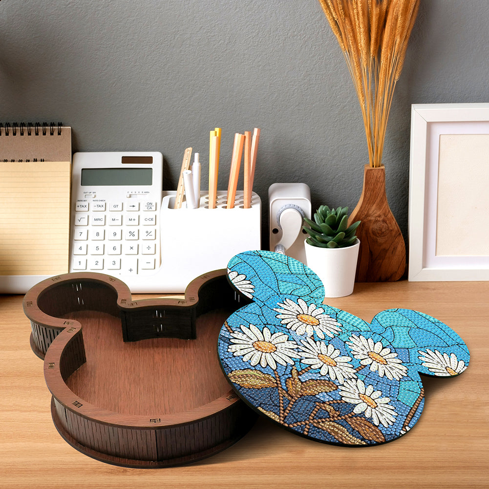 Wood DIY Diamond Painting Jewelry Organizer Box Kit for Adults Kids (Flower)
