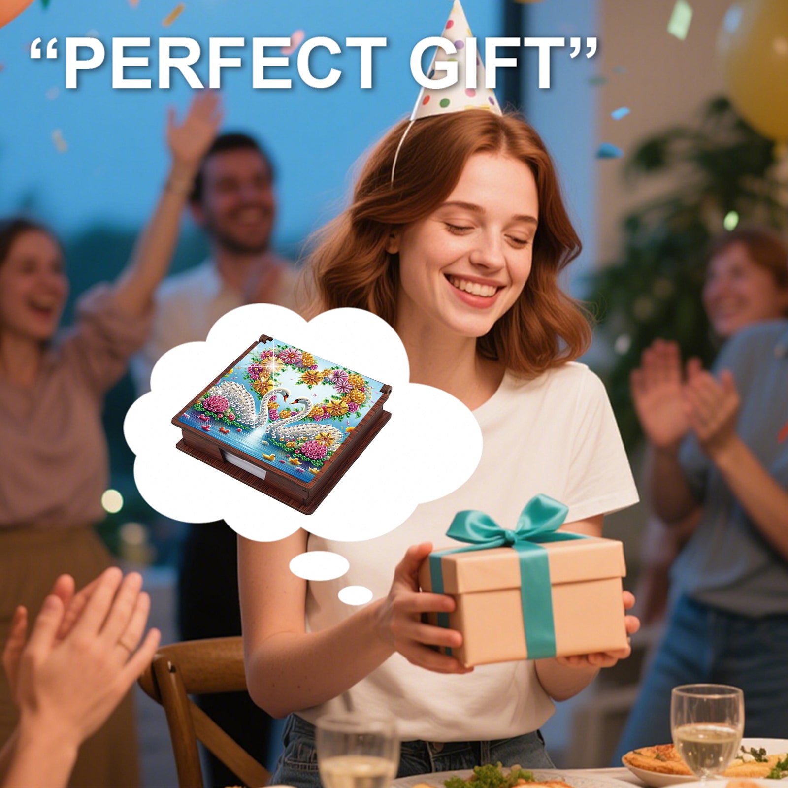 Wooden DIY Flower Swan Diamond Painting Kit Note Box with 160 Papers for Office