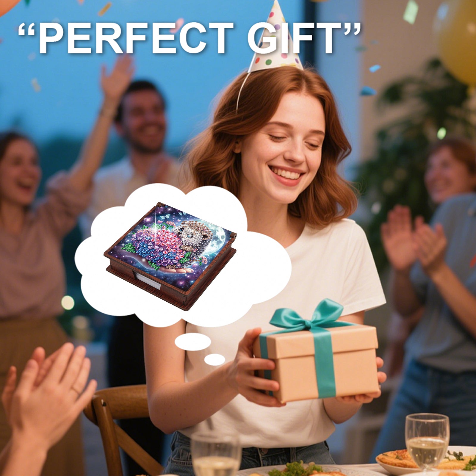 Wooden DIY Hedgehog Hydrangea Bouquet Diamond Painting Kit Note Box for Office