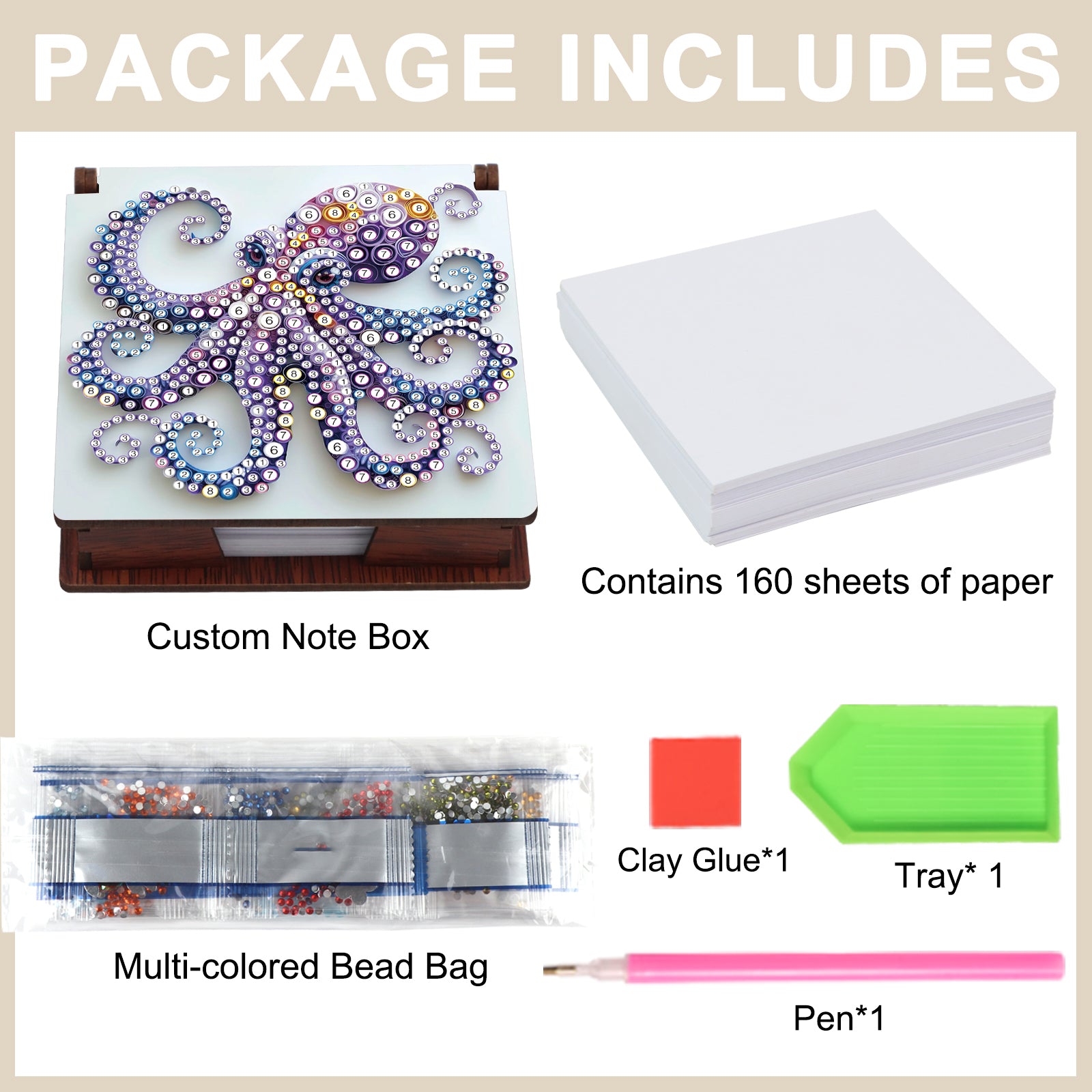 Wooden DIY Octopus Diamond Painting Kit Note Box with 160 Papers for Office Desk