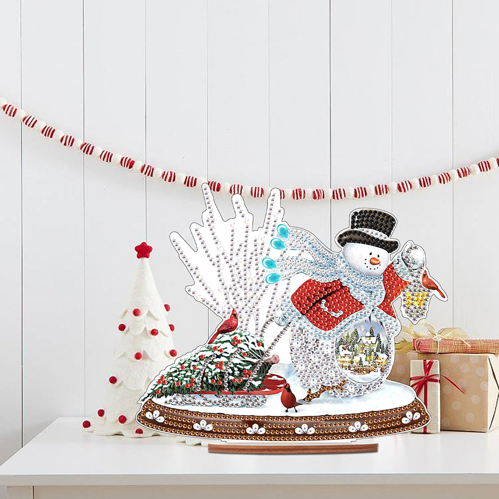 Wooden Xmas Snowman Diamonds Painting Desktop Decor for Table Office Decor (#2)