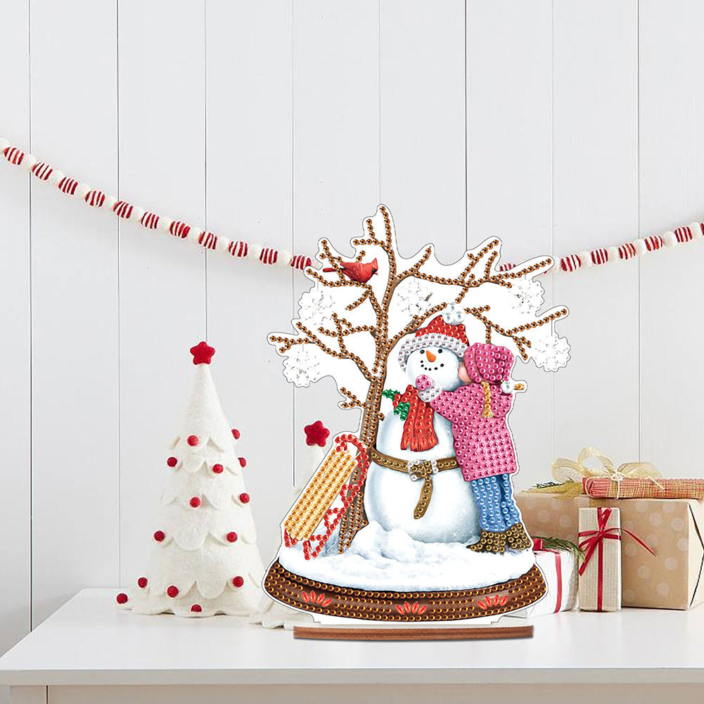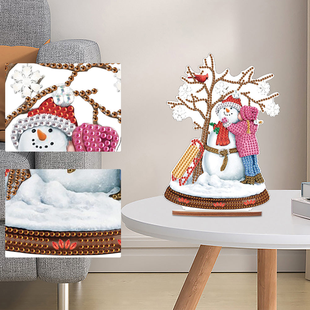 Wooden Xmas Snowman Diamonds Painting Desktop Decor for Table Office Decor (#4)
