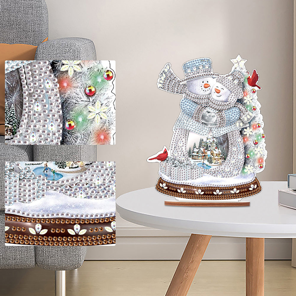 Wooden Xmas Snowman Diamonds Painting Desktop Decor for Table Office Decor (#5)