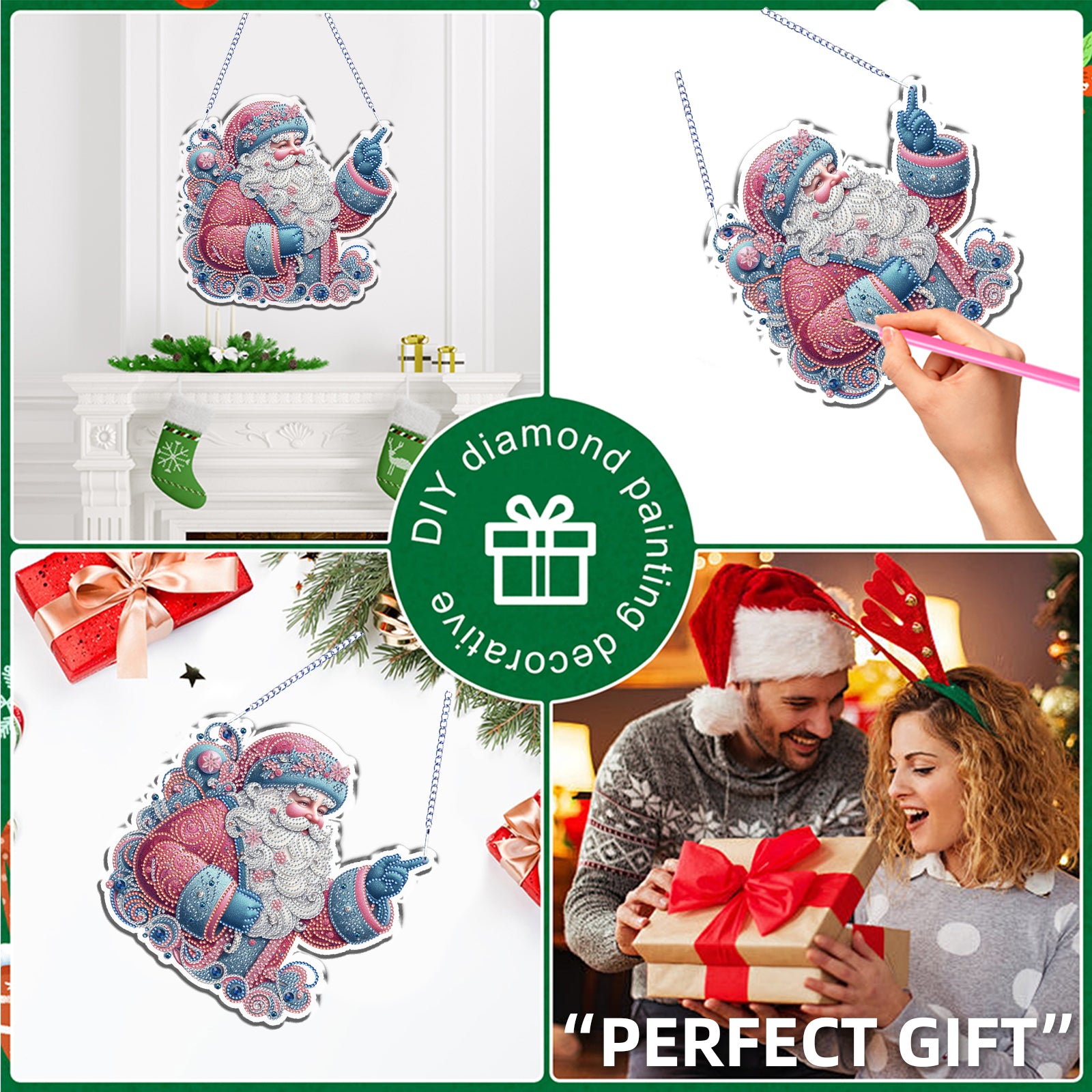 Xmas 5D DIY Special Shape Partial Drill Dimond Paintings Wall Decor 23.5x23cm Christmas