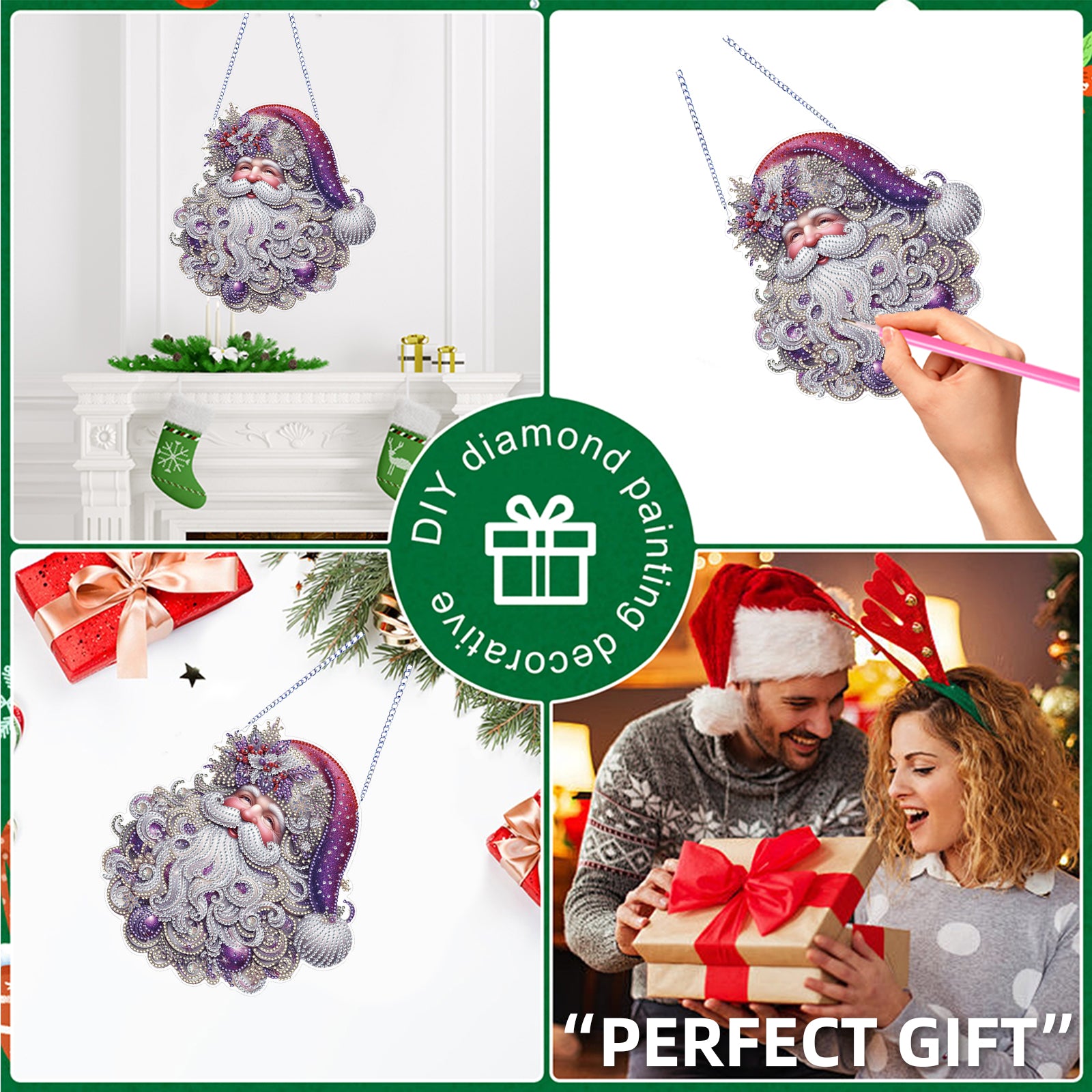 Xmas 5D DIY Special Shape Partial Drill Dimond Paintings Wall Decor 23.5x23cm Christmas