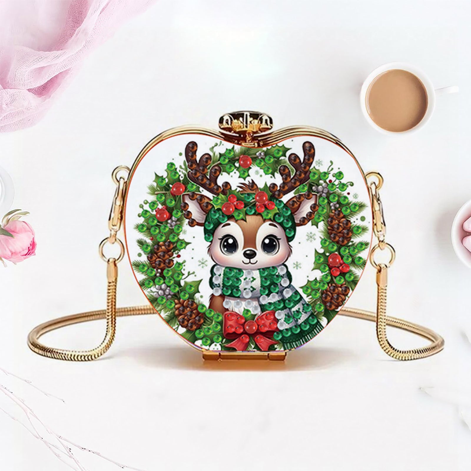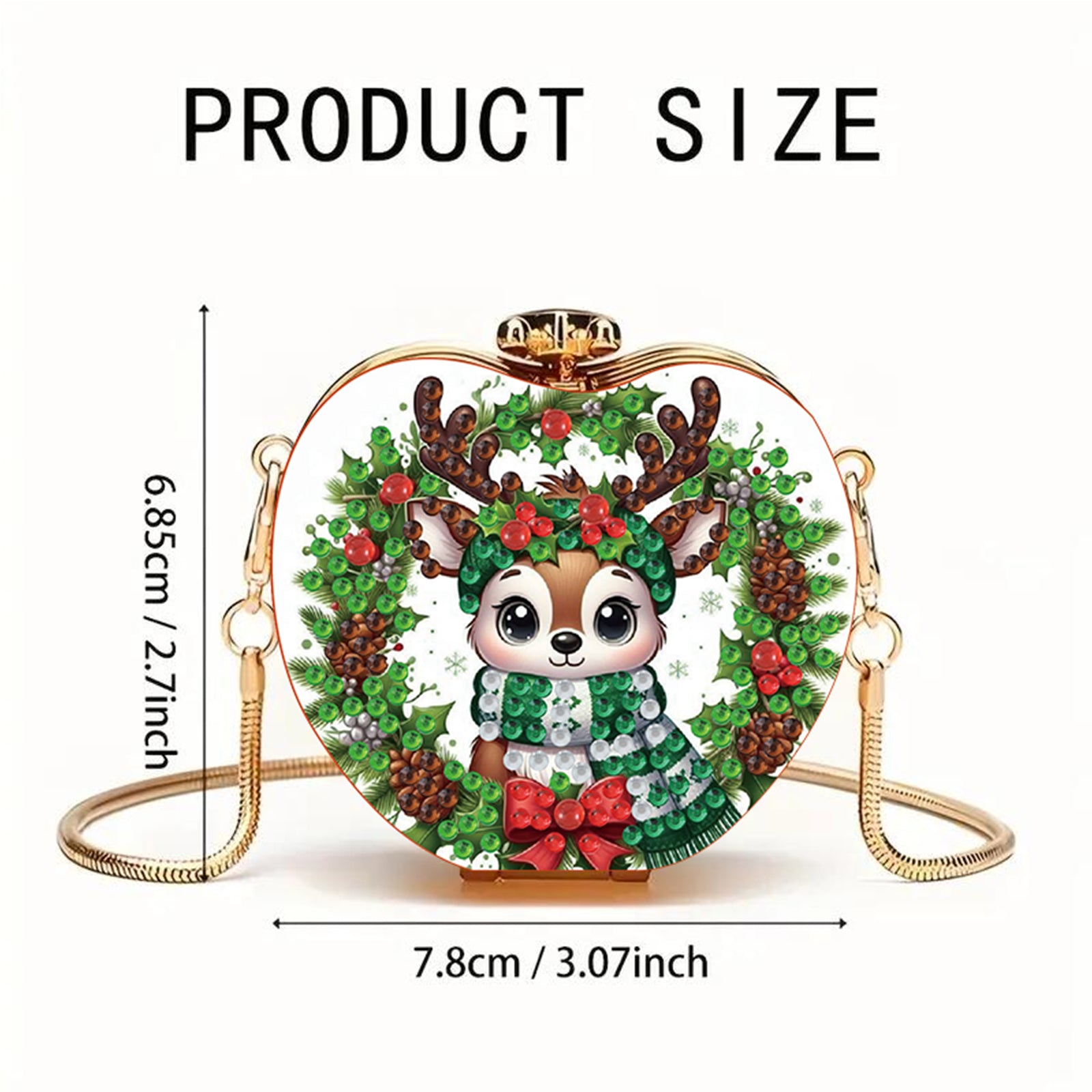 Xmas Reindeer DIY Acrylic Love Art Diamond Painting Coin Purse w/Chain for Women